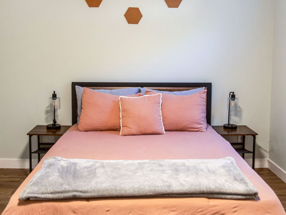 Our goal is to provide a private, secure space while fostering a sense of community among residents. Each private bedroom is thoughtfully designed with a queen bed, a dedicated work area, and a TV, giving you the perfect blend of comfort, privacy, and functionality.